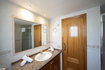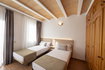 Un dormitorio con cama doble y el otro con dos camas individuales.