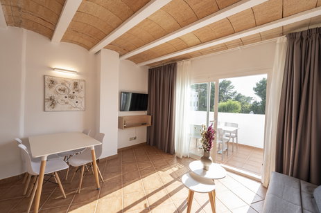 Dispone de terraza con vistas a la piscina, cocina equipada, televisión con pantalla plana (TV vía satélite), WI-Fi, aire acondicionado, zona de comedor con sofá cama y baño con ducha.